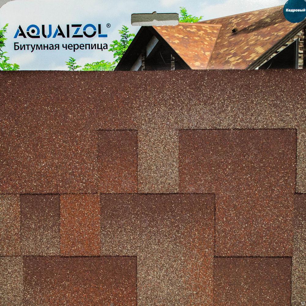 - Повна комплектація покрівлі Акваізол усіма добірними елементами й аксесуарами це осб, карнизька та торцева планки, цвяхи для бітумної черепиці, мастика, підкладковий килим під бітумну черепицю, аератори, конківоно-карнизну черепицю.