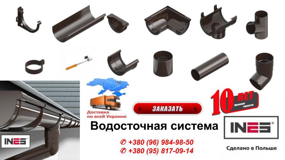 Водостічні системи INES характеризуються сучасним дизайном і високою точністю виконання. Технології виготовлення гарантують високу якість і довгострокову гарантію на 10 років.