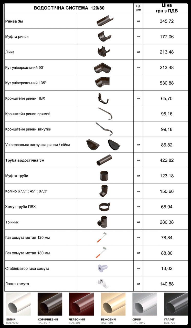 Діаметр ринви 120 мм.