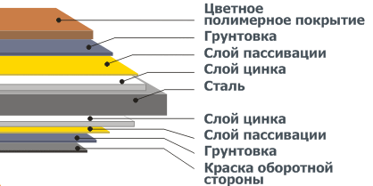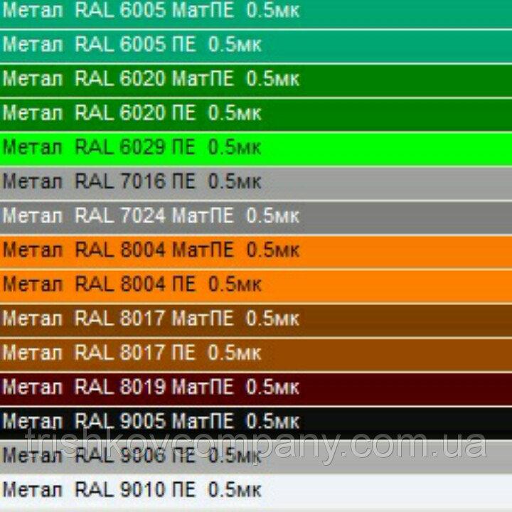 Полімерне покриття — Глянець і мат у широкому асортименті, різні виробники металу, різне цинкування металу від 60-275 грамів на кв. метр площі, а також регульована довжина аркуша від 2 метрів до 12 м.