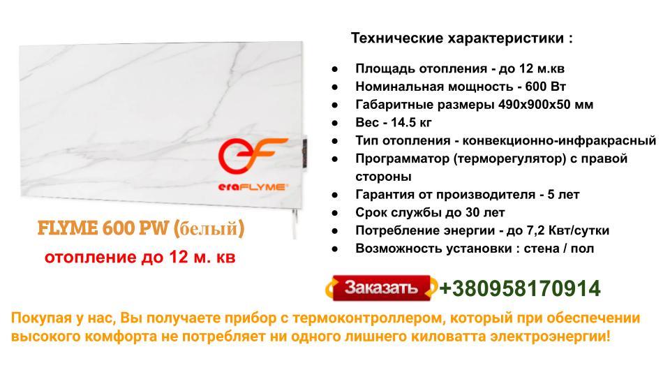 Керамічна панель опалення FLYME 600PW білий камінь