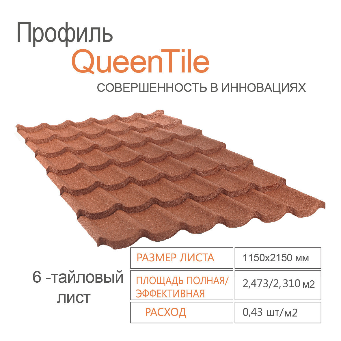 Композитна металочерепиця QueenTile Standard Rosso 6-тайловий лист