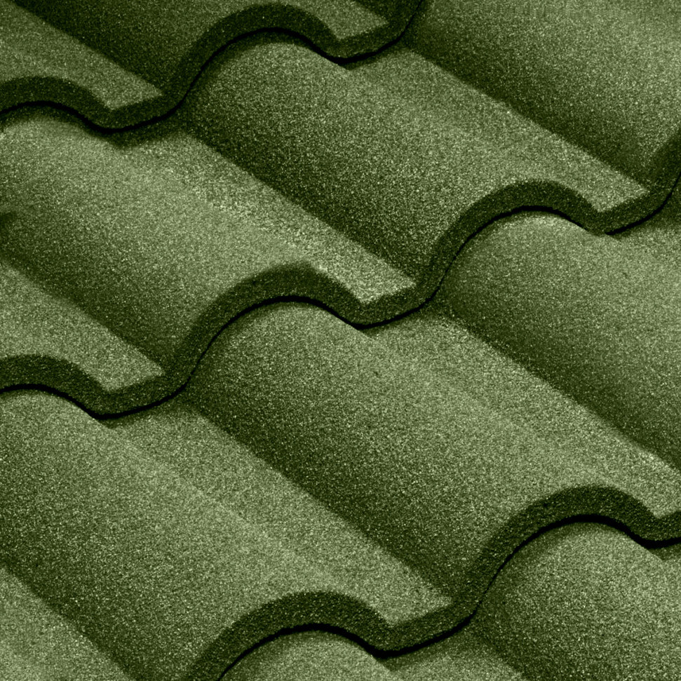 Профіль QueenTile® Verona Green — найкращий вибір для дахів у середземноморському стилі. У ньому ідеально поєднуються краса хвилі та благородна фактурність натурального каменю. Має чудовий вигляд на покрівлі невеликих розмірів. Не потрібні спеціальні дорогі добірні елементи. Збільшена жорсткість аркуша. Приємний погляд зеленого кольору максимально схожий на хвойні мотиви та створює ефект природного покриття.