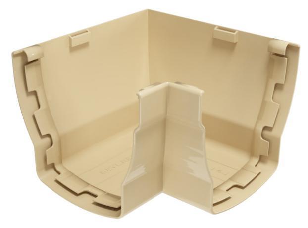 Кут жолоба Elegance 140 монтується без клею, за допомогою передбачених внутрішніх пластикових кріплень. Водосхідна система Devorex Elegance 140 виготовлена в такий спосіб, що можна не хвилюватися про про протікання та розширення/стиснення ПВХ під час зниження або підйому температур. Ці моменти передбачені виробником і додатково компенсувати можливі зсідання немає потреби.