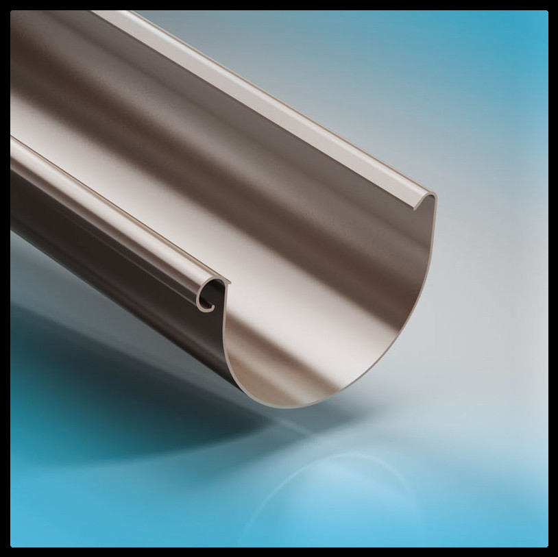 Ребра жорсткості двотаврового профілю жолоби Характерні для ProAQUA Ø 125 і 150 фланці переднього та заднього країв жолоба зміцнюють систему та надають їй максимальну міцність. Параболічна форма самого жолоба та ідеальна гладкість поверхні забезпечують чудову пропускну здатність води.