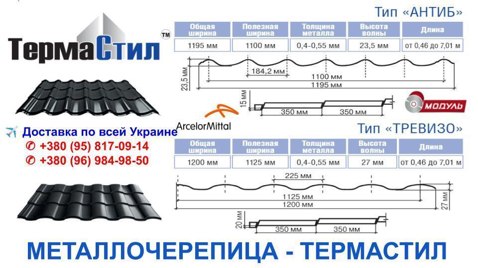 Металочерепиця “Trevizo” Thermasteel, ral 9005 0,45 matt Китай