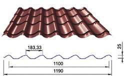 Металочерепиця коричнева 0,4 мм, сталь Китай рал 8017.