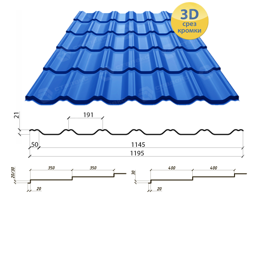Виробництво металочерепиці з різної товщини металу з різним цинкуванням і полімерним покриттям.