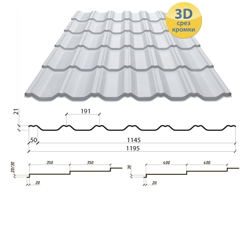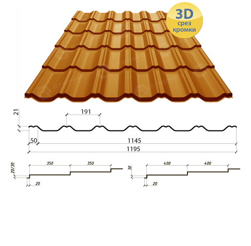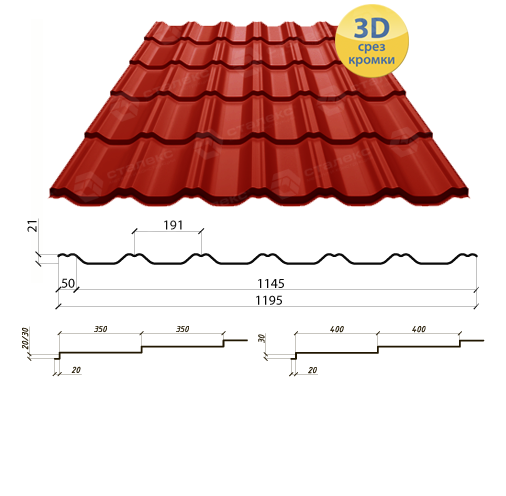 Металочерепиця Сталекс — MAXIMA 350/30 0,45 мм PEMA RAL 8004 Італія Marchegalia