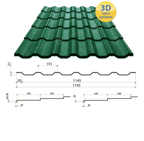 Металочерепиця — MAXIMA PEMA RAL 6020 Італія Marchegalia 350/30 0,45 мм завод Сталекс
