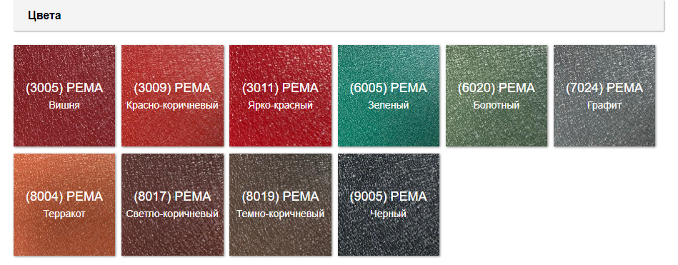 Широка колірна гама RAL: 9005 ⁇ 8017 ⁇ 8019 ⁇ 7024 ⁇ 6005 ⁇ 3005 ⁇