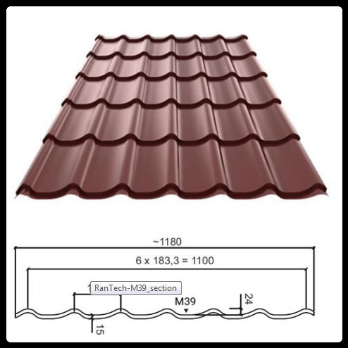 Металочерепиця Рантех М-39 (RanTech) 0,43 мм матове покриття — оформити замовлення й купити в Києві й Україні.
