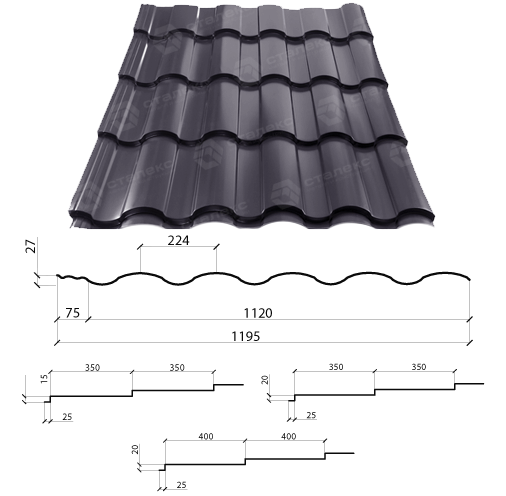 Металочерепиця “VALENCIA PEMA RAL 8019” Німеччина (350/20 0,50*1195)