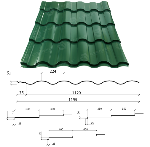 Металочерепиця — MAXIMA PEMA RAL 6020 Італія Marchegalia 350/30 0,45 мм завод Сталекс