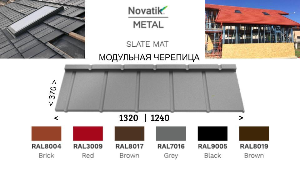 Модульна черепиця “Novatik” METAL SLATE мат (Румунія) — Сталь Voestalpine (Австрія), 0,5 мм купити в Києві й Україні.