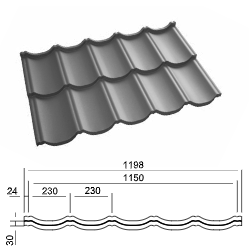 Модульна металочерепиця — ТУР – BLACHY PRUSZYNSKI / RR 028 / TILE — ( 1198 мм х 720 мм х 60 ) мм