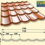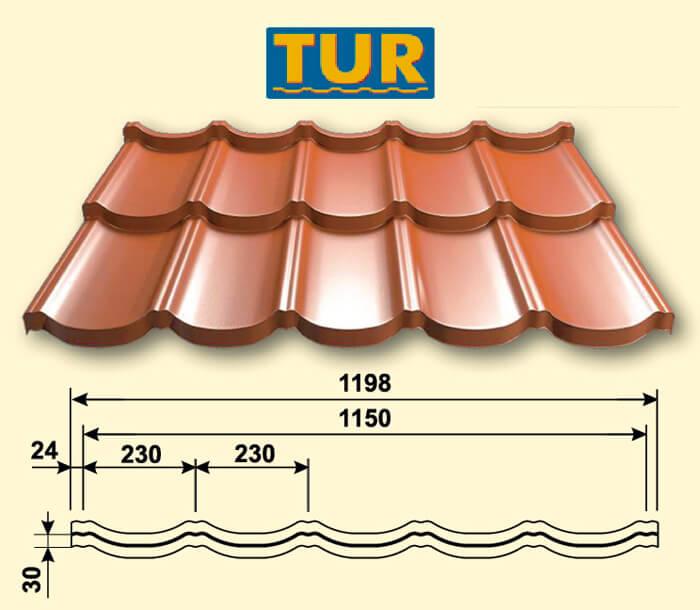 TUR має чудовий зовнішній вигляд, який надасть вашому дому своєрідного стилю. Порівняно невисока вартість аркуша високоякісного покрівельного матеріалу зумовлена такими характеристиками: