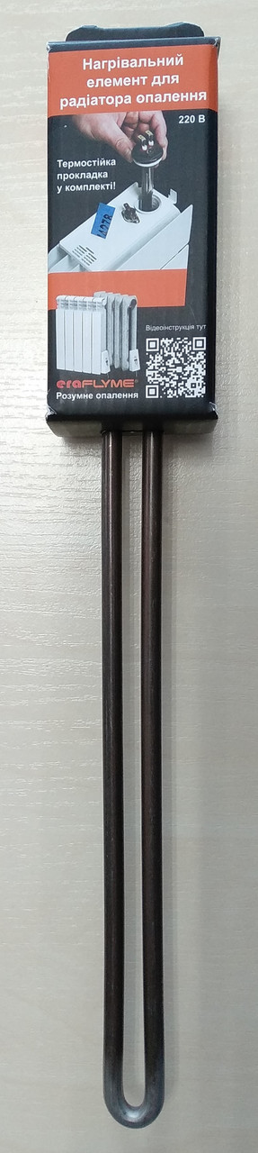 ТЕН для радіатора опалення це нагріваний елемент який встановлюється у радіатор (алюмінієвий або біметалевий) або навіть у чувунну батарею. ТЕНи для радіаторів опалення управляються терморегулятором та мають дві клеми для підключення живлення і клему для підключення заземлення. У конструкції є трубка (патрубок) для вставки датчика вимірювання температури. ТЕН встановлюється у радіатор для опалення і має праву різьбу діаметром 1 дюйм. Закручується нагрівальний елемент ключем на 32 мм. У комплекті є термостійка герметизуюча прокладка. Потужність: 390 Вт Площа опалення: до 7 м2 (при висоті стелі до 2,7 м) Діаметр різьби: 1” (Права) під ключ 32мм