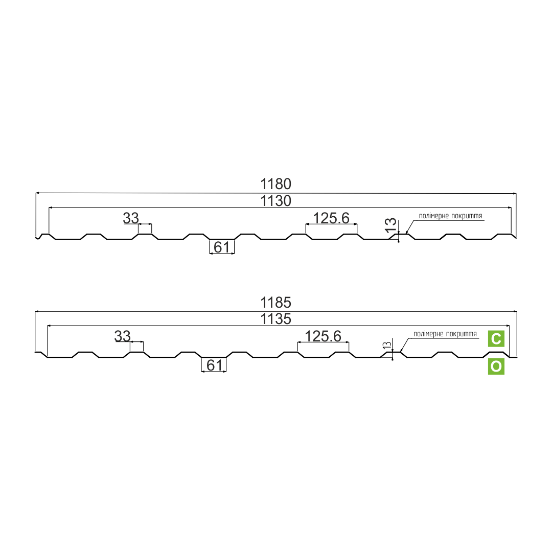 УВАГА: Профнастил економкласу виробник металу — Китай покриття поліестер 25 мікронів. 0.4 mm. Максимальна довжина профнастилу може досягати 7 м.