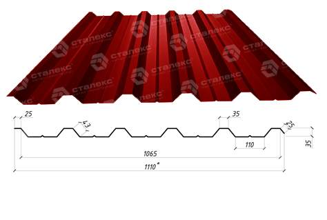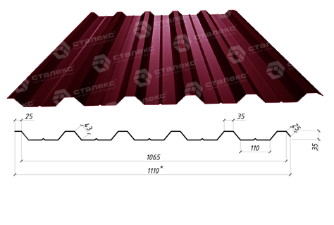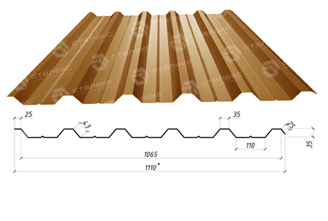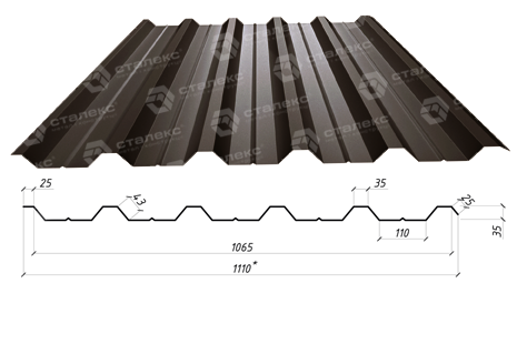 Профнактил НС-35 має висоту ребра (глибину канавки) 35 мм. Виготовлений з італійського металу заводу “Arvedi” завтовшки 0,5 мм.