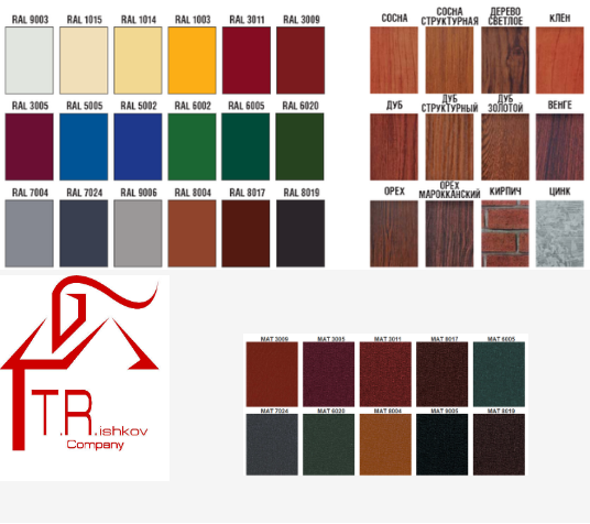 – Оцинкована сталь у рулонах із полімерним покриттям за каталогом кольорів RAL TEXTURE (1014, 1015, 1018, 3003, 3005, 5005, 6002, 6005, 6029, 7004, 8017, 9003,9005 тощо)