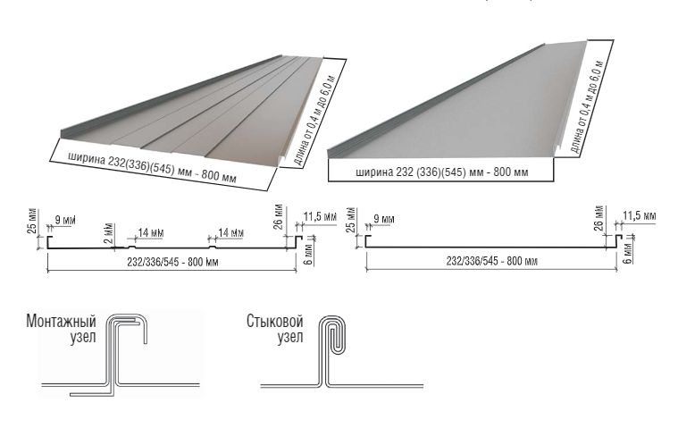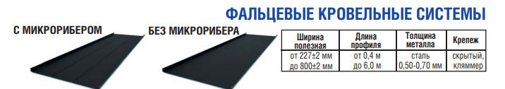 Міцність. Механічні сполуки фальцевої покрівлі роблять шви досить міцними, а використання додаткових ребер жорсткості неабияк зміцнює щільність аркушів. Сучасний вид покрівлі. Новітнє обладнання дає змогу виготовити не тільки прямі, але й радіусні, конусні та інші картини.