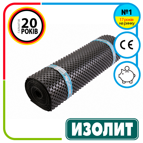 Шиповидна геомембрана Ізоліт COTTAGE (1х20м) Країна-виробник: Чехія