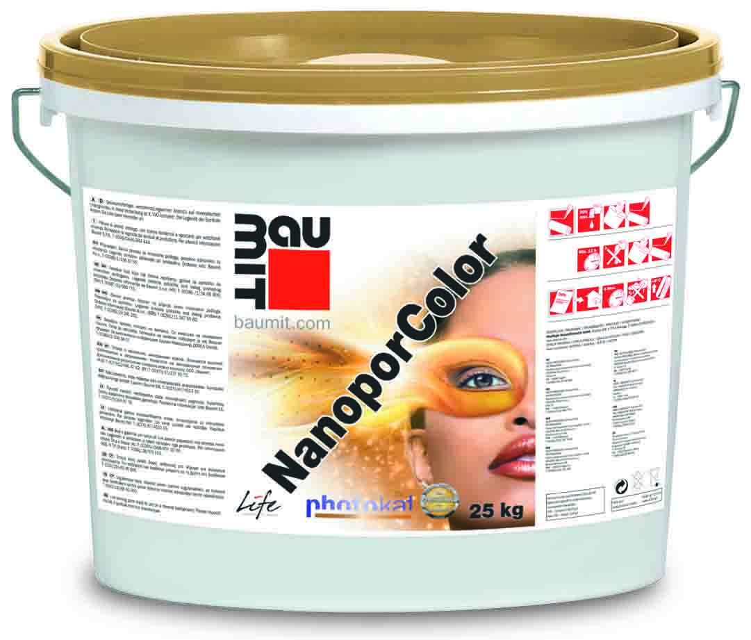 Baumit NanoporColor (Бауміт Нанопор Колор) — інноваційна водорозчинна нанофарба, особливо стійка до забруднень і атмосферних впливів, максимально паропроникна, водовідштовхувальна, а також стійка до випромінювання ультрафіолетових променів, промислової загазованості, впливу мікроорганізмів. Матеріал твердне без напруги, екологічно безпечний, а завдяки нанокристалічним добавкам, мікроволокнам і гладкій мікроповерхнощадній структурі, здатний забезпечити гарний зовнішній вигляд Вашому фасаду на довгі роки. Фарба призначена для забезпечення захисного шару за підготовленими новими та старими мінеральними основами, а також у системах теплоізоляцій Baumit. Рекомендується для реставрації пам’яток архітектури. Використовується для ручного застосування зовні та всередині будівель.