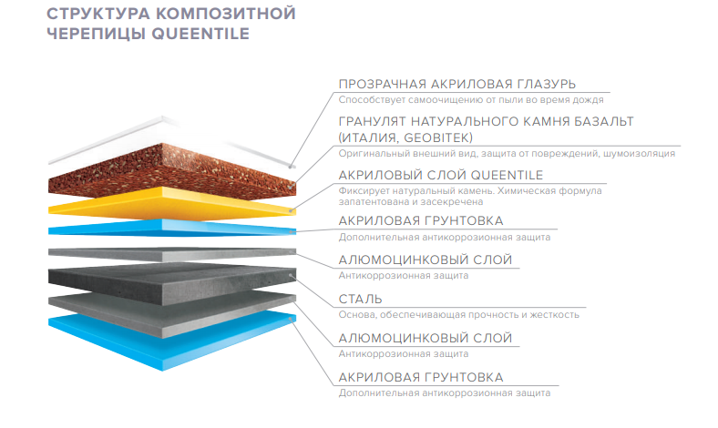 Композитна черепиця QUEENTILE — складний багатошаровий покрівельний матеріал.